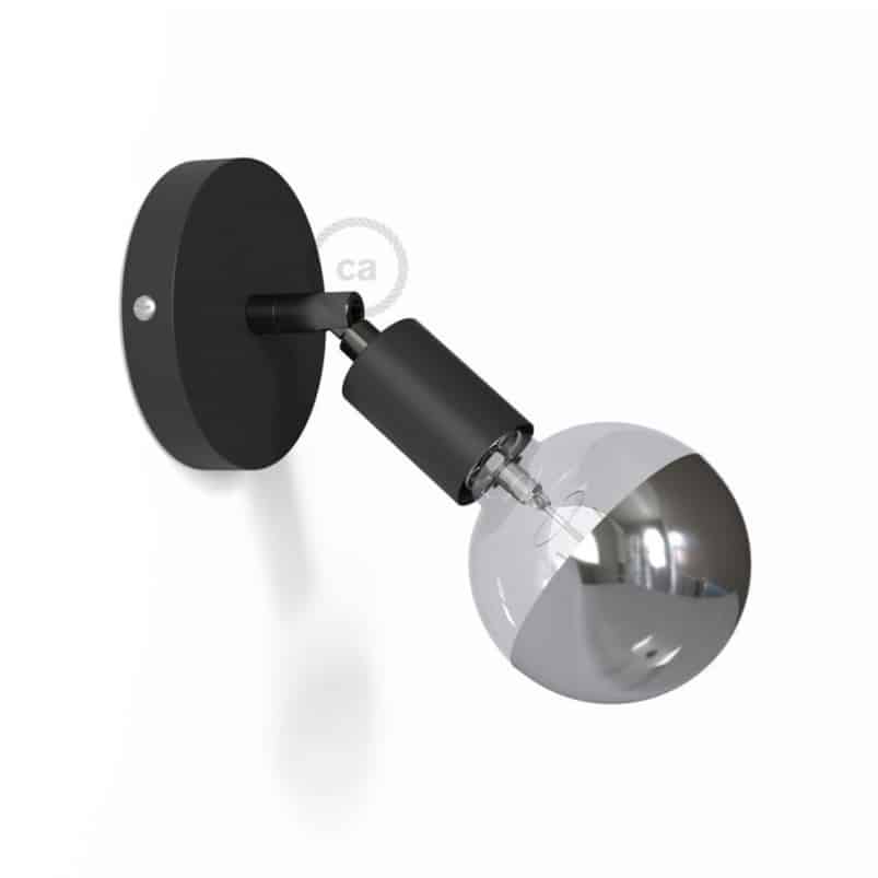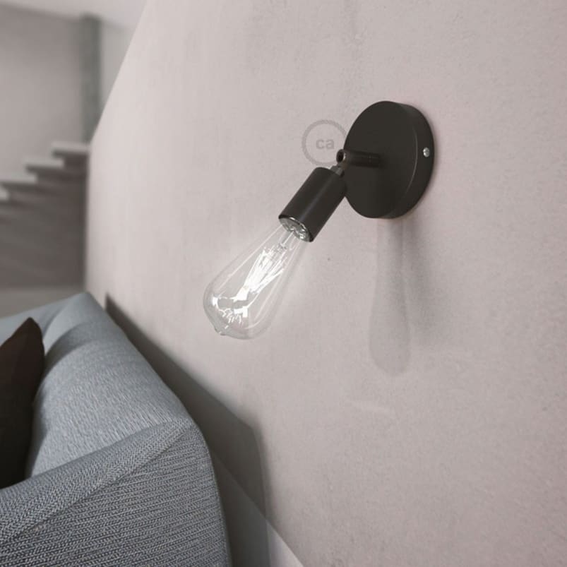 Small black wall lamp. Can be tilted 90° and swivelled 315°. Sold without bulb.