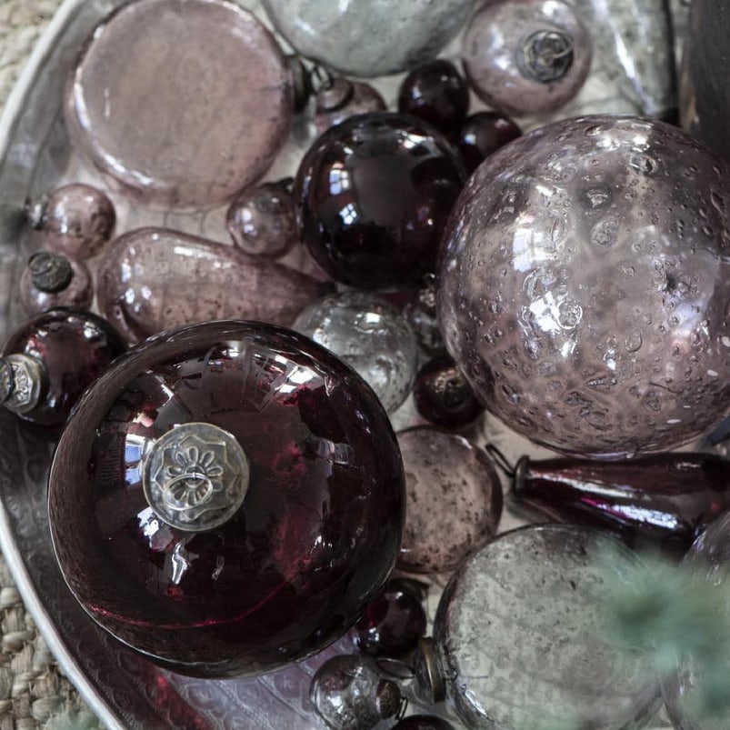Handmade Christmas toy with glass that looks like fused stone pieces. This creates bumps in different patterns and makes each Christmas bubble unique.