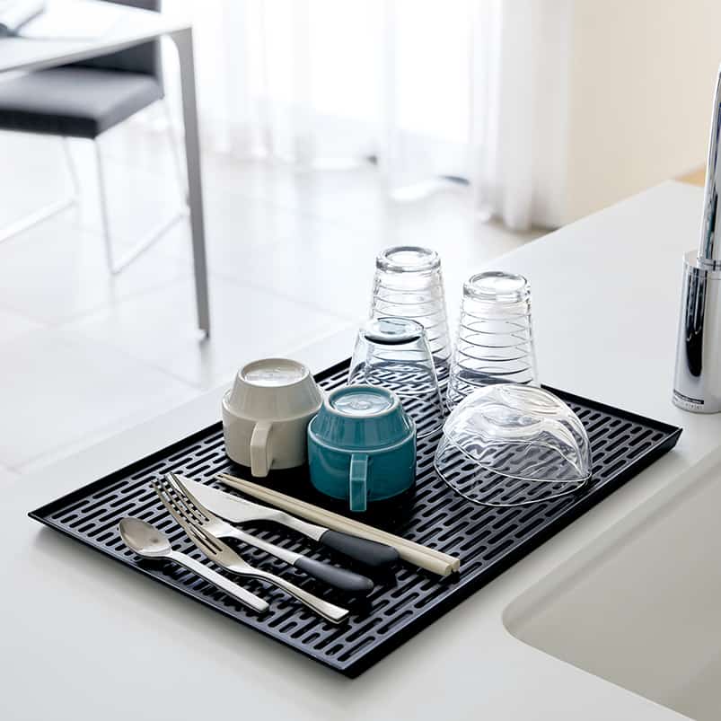 This dish drainer is ideal for every kitchen. Placed next to the sink, it will not only perform its intended drying function, but will also give a minimalist aesthetic feel.