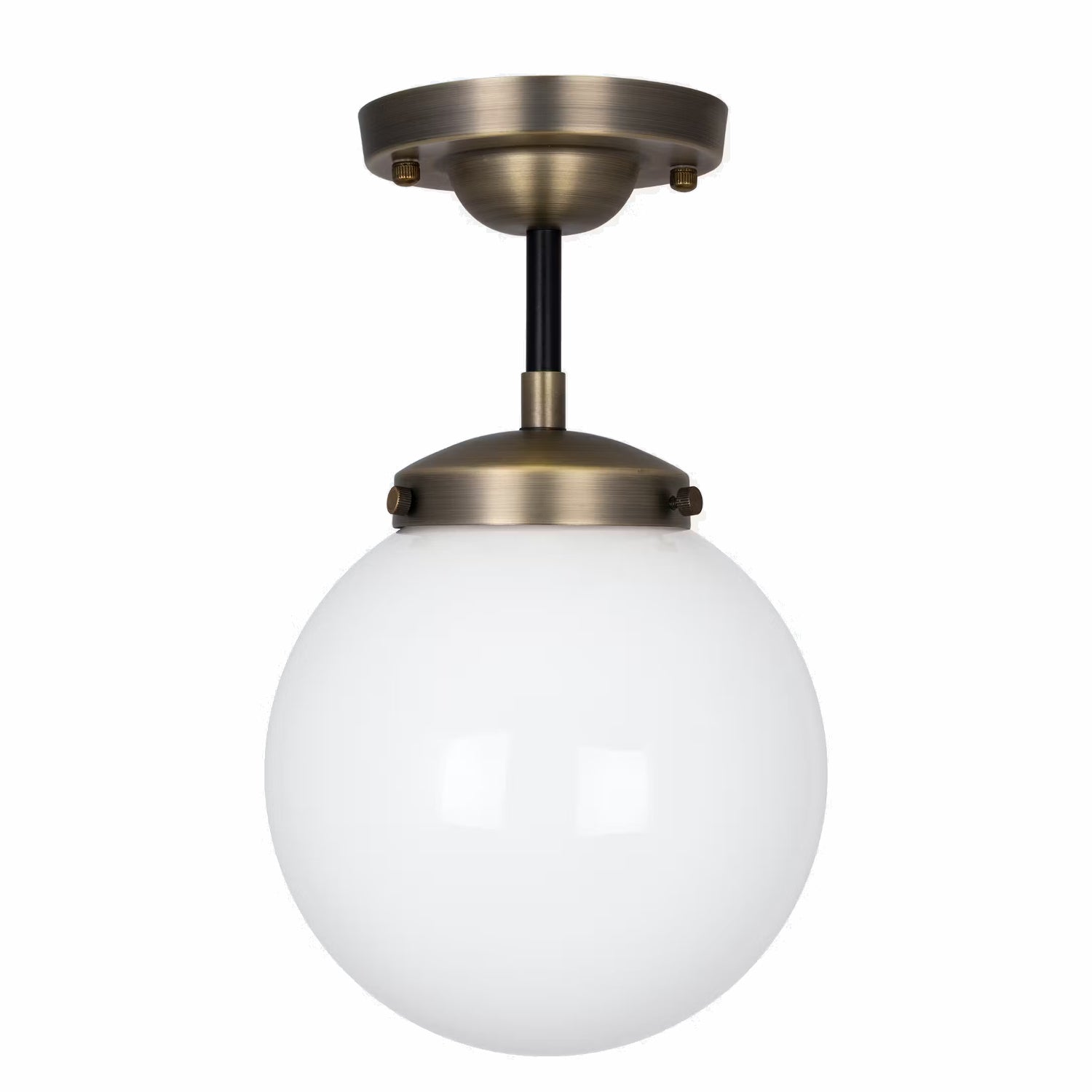Classically styled with aged brass details and frosted glass bubble. This luminaire is ideal for the kitchen or bathroom.