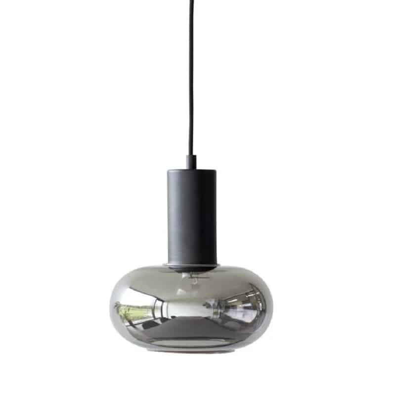 The lamp comes in two shapes. The oval and cylindrical shapes harmoniously merge into a single image. One part of the luminaire is mirrored, the other black. The luminaire is sold without bulb.